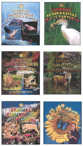 Suitable for children of ages 7 to 10 years, this title makes scientific concepts easy for primary school students to understand. It includes: Cadenas alimentarias de la costa marina; Cadenas alimentarias de los pantanos; Cadenas alimentarias del bosque; Cadenas alimentarias del bosque tropical; and, Cadenas alimentarias del desierto.